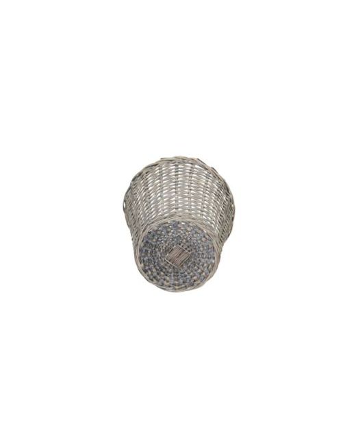 This wicker waste basket is the perfect combination of classic elegance and utility. It's simple yet charming design can easily match any pre-existing style and lends itself to many potential usages. This wicker waste basket is essential in any household. This wicker waste basket is made of willow reeds woven into the classic basket weave. The willow is painted a weathered gray look and decorative willow stitching adorns the top and bottom rims. The purchase of this waste basket includes a plastic liner that may be used to avoid potential leaks or spills. The wicker weave provides strength to the basket so that it may hold its shape without the need for a metal frame. Use this waste basket anywhere around the house including the bedroom, office space or entryway. While the main purpose of this basket is to serve as a quick way to dispose of items, it can be used for a host of other purposes as well. With the use of the plastic liner, this wicker waste basket can easily transform into a decorative planter. It can also be used to hold other items such as knitting supplies. This wicker waste basket can be used for a variety of purposes around the house without sacrificing style. The willow weave makes for a sturdy basket that exudes natural charm. Anyone in need of a quick disposal option around the house would greatly appreciate the convenient size and utility of this basket.
