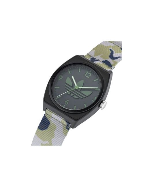 The perfect match between classic watch design, streetwear attitude and everyday comfort. This project two watch proudly shows off the iconic adicolor palette and playful adidas originals graphics. Style #AOST220402I.