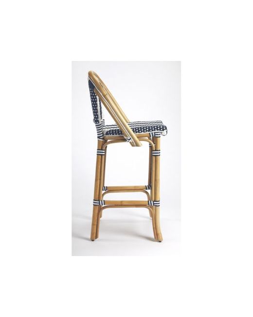 Evoking images of sidewalk tables in the Cote d' Azur; barstools like this will give your kitchen or patio the casual sophistication of a Mediterrnean coastal bistro. Skillfully crafted from thick bent rattan for superb durability; it features weather resistant woven plastic in an updated and fresh pattern. This barstool is lightweight for easy mobility with comfort to make the space it's in a frequent gathering place.