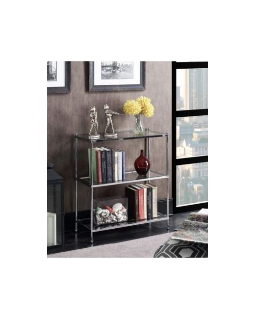 Enhance your living room or office with the Royal Crest 3 tier bookcase by Convenience Concepts. The chrome frame provides the durability you need while giving the contemporary look you want. Also featuring 3 glass shelves that provide plenty of space to display collectibles or additional storage.