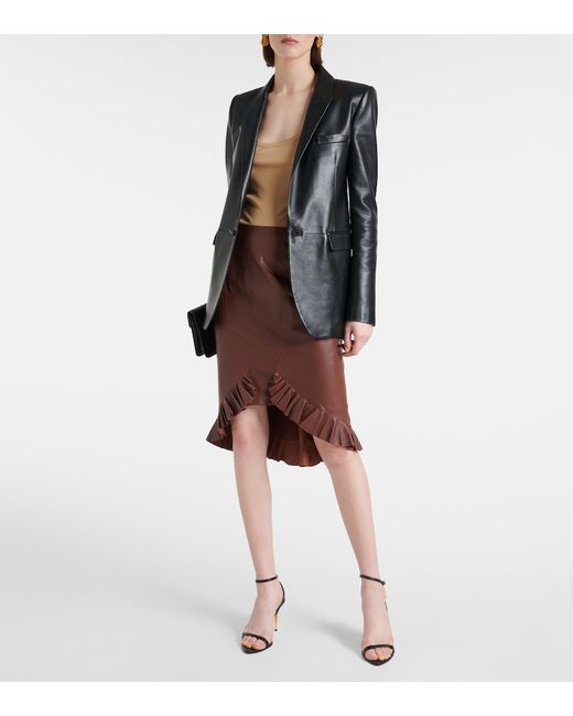 Material: 100% lamb leather. Care instructions: specialist clean. Made in Italy. Designer color name: Cognac. Closure: zipped side. Lining: 92% silk, 8% elastane. Contains non-textile parts of animal origin.
