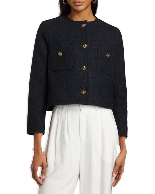 Crafted of a textured cotton blend, ba & sh's Meredith jacket showcases a tailored design with patch pockets and goldtone buttons. Crewneck Long sleeves Front patch pockets Button-front closure 74% cotton/19% wool/7% polyamide Lining: 100% viscose Hand wash Imported SIZE & FIt About 19.75" from shoulder to hem Model measurements: 5'10" tall Model is wearing a US size 4. Contemporary Sportswear - Contemporary Lifestyle > Ba & sh > Saks Fifth Avenue > Barneys. ba & sh. Color: Marine. Size: XS.