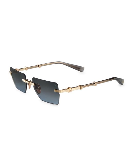 Balmain's Pierre square sunglasses showcase a ridged goldtone design along the temples and bridge. 100% UV protection Solid lenses Adjustable nose pads Titanium/acetate Made in Japan SIZE 53mm lens width 19mm bridge width 140mm temple length ABOUT THE BRAND In 1945, founder Pierre Balmain made his well-received debut of opulent, ultra-feminine designs. Known today for its iconic blazers, impeccably constructed dresses and signature fragrances, the brand continues its dedication to masterful tailoring and elegance under the helm of Creative Director Olivier Rousteing. Soft Accessories - Sunglasses > Balmain > Saks Fifth Avenue > Barneys. Balmain. Color: Gold Grey Gradient.