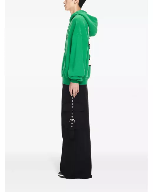 grass green cotton text print logo print to the front drawstring hood long sleeves front pouch pocket straight hem