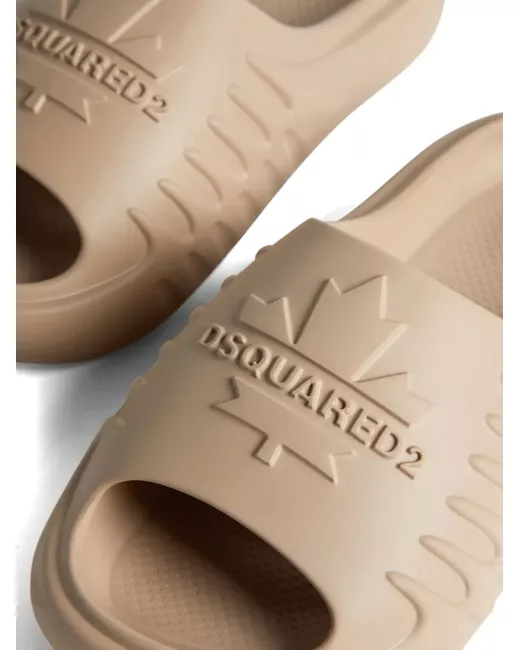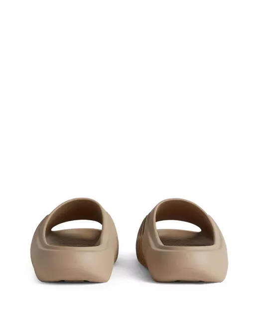 sand beige embossed logo to the front slip-on style open toe moulded footbed chunky rubber sole