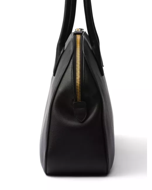 black leather two long top handles handle holder logo stamp to the front two-way zip fastening main compartment internal zip-fastening pocket internal logo stamp gold-tone hardware
