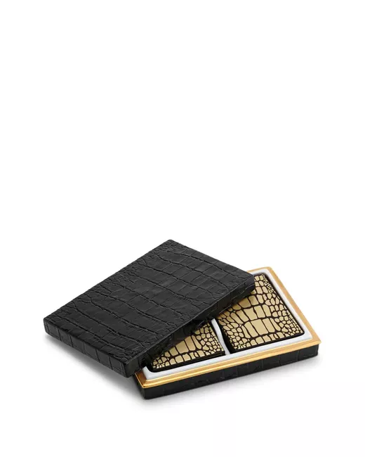 black/ivory porcelain/24kt gold/paper 17cm x 12cm x3cm 2 decks of playing cards embossed crocodile effect 24kt yellow gold accents Limoges porcelain box