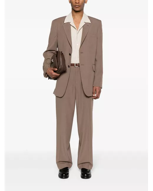 olive brown TENCEL™ Lyocell virgin wool blend dart detailing notched lapels front button fastening shoulder pads long sleeves with buttoned cuffs chest welt pocket two front flap pockets Italian rear vents straight hem satin lining