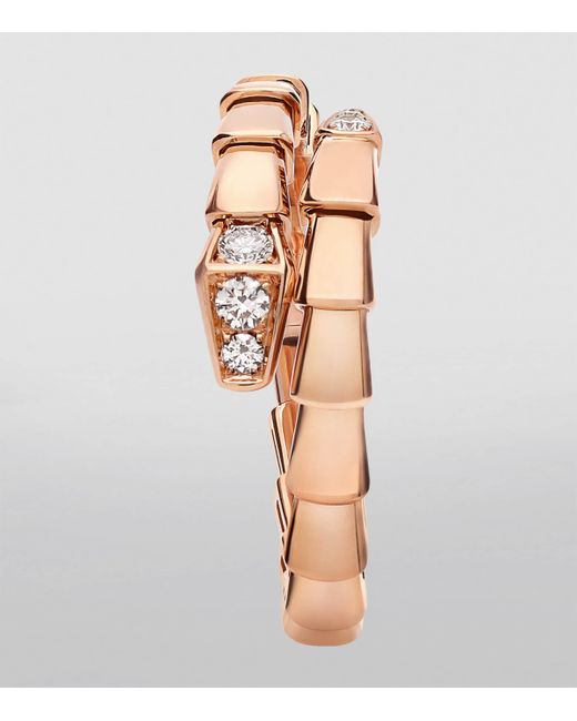 Coiling sensually around your finger, the Bulgari Serpenti Viper ring summons the power, mystique and danger of a venomous snake. It's an homage to the jeweller's reptilian muse, focusing not on the snakehead, as in the wider Serpenti collection, but rather the creature's captivating scales. Forged from warm 18-karat rose gold, the slender silhouette is set with demi-pavé diamonds - stones here lending further distinguished sensuality to the wearer.