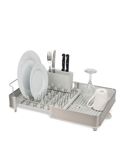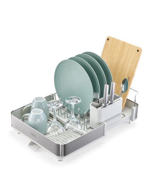Functionality is the driving force behind Joseph Joseph's thoughtful home products, with each piece created with problem-solving in mind. Ensuring there's plenty of room for your dishes and cutlery after mealtimes, the Extend expandable dish rack - with stainless steel trims - features a movable spout to drain water, a dedicated draining space for cutlery and raised ribs that prevent water from becoming trapped under glasses and bowls.