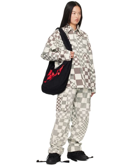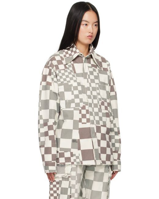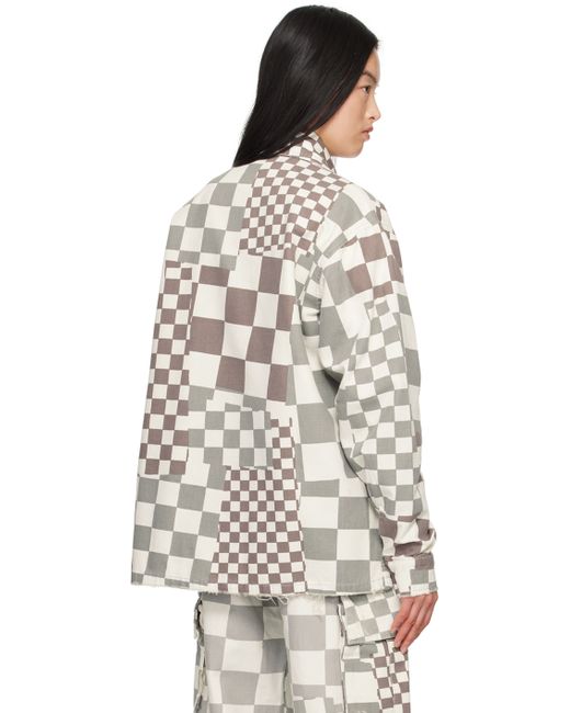Cotton canvas jacket. Check pattern and distressing throughout. · Spread collar · Concealed press-stud closure · Patch pockets · Logo embroidered at front · Dropped shoulders · Press-stud fastening at cuffs Supplier color: Checker
