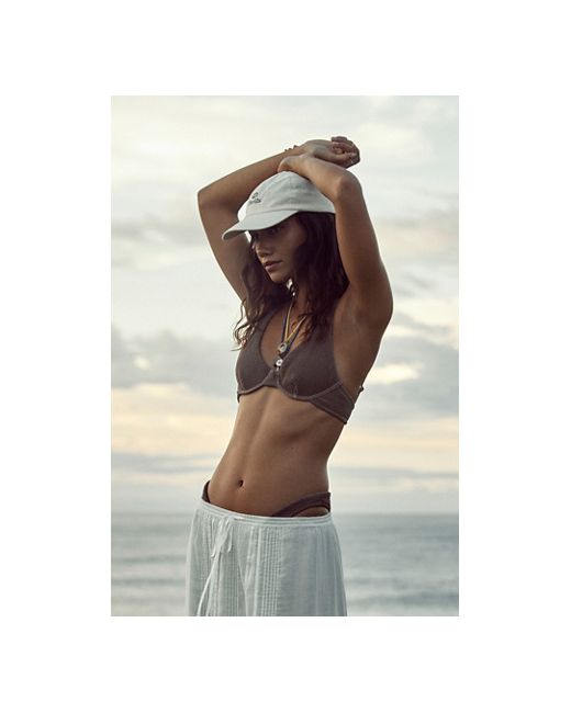 So chic and in a supportive silhouette, this feminine bikini top is featured in a textured fabrication and underwire-lined style with adjustable shoulder straps and a back clasp closure. * Textured fabric * Adjustable straps * Encased underwire Rhythm Wave Break Underwire Bikini Top at Free People in Cocoa, Size: Small