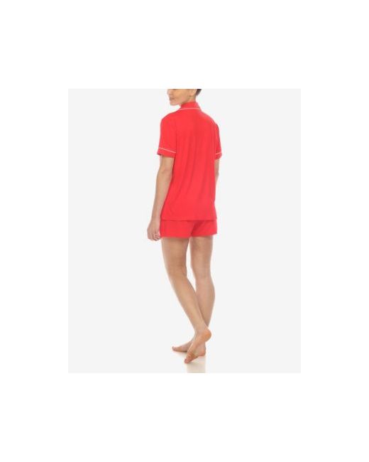 Introducing our women's short sleeve pajama set; a mix of luxurious comfort and style. The top features a notch collar lapel, and mini front chest pockets. The shorts feature a full elastic waistband with a relaxed and comfortable fit.