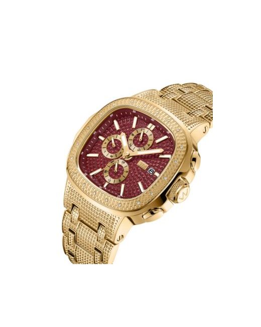 A nostalgic shape with modern finishes. The Heist features a rounded square case, embellished dial, 20 diamonds, and a multifunctional movement. A textured bracelet crafted in durable 18K gold-plated stainless steel, adjustable for a custom fit, completes the distinctive look.