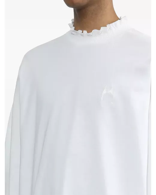 white cotton ruffled detailing drop shoulder long sleeves elasticated cuffs straight hem