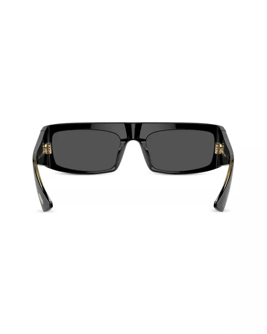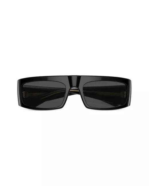 jet black acetate rectangle frame tinted lenses UV-protective lenses oversize arms curved tips These glasses come with a protective case.
