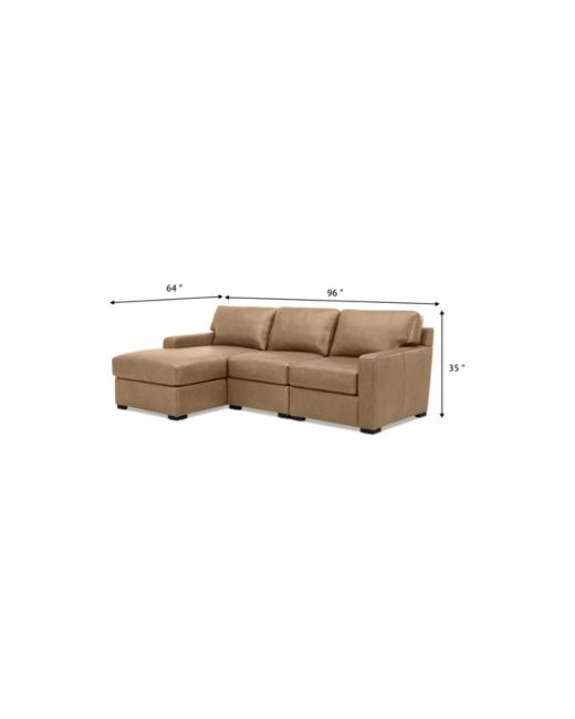 Gray Radley 3-Pc. Leather Modular Chaise Sectional Created for