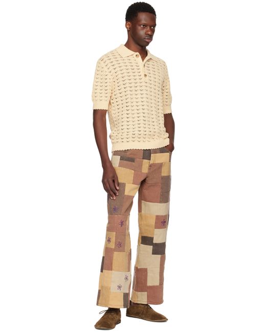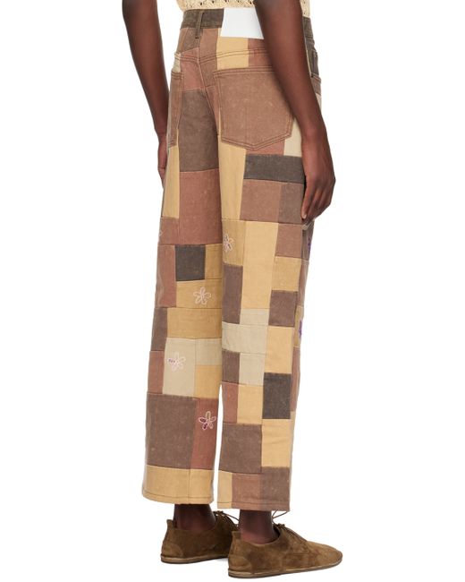 Handcrafted relaxed-fit straight-leg non-stretch denim jeans. Hand-embroidered floral graphics throughout. · Patchwork construction · Belt loops · Five-pocket styling · Zip-fly · Leather logo patch at back waistband Each item is unique. Please note that coloration may vary. Supplier color: Brown