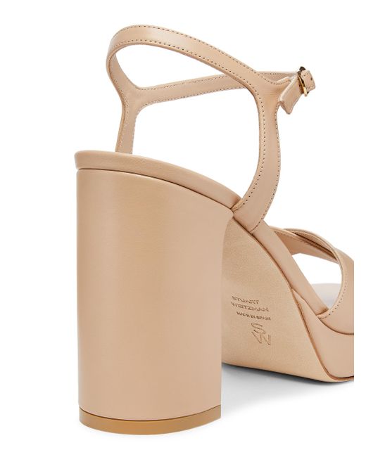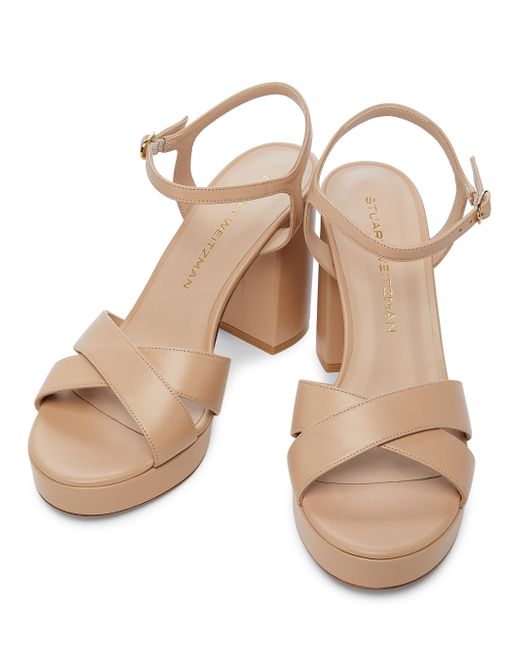 Stuart Weitzman's Dayna platform sandals are crafted in Spain of fine leather. The pair features a buckle closure for a secure fit. Open toe Buckle closure Leather upper Leather lining Leather/TPU sole Made in Spain SIZE Heel: about 4" (100mm) ABOUT THE BRAND Designer Stuart Weitzman started his career designing for his father's shoe company, before launching his own brand in 1986. Known for his glamorous pumps and over-the-knee boots, Weitzman has also incorporated unique materials in his designs, ranging from Lucite and wallpaper to cork, vinyl and even gold. Today, the label continues to create classic, feminine silhouettes that balance both comfort and style. Women's Shoes - Stuart Weitzman Wmn Shoe > Stuart Weitzman > Saks Fifth Avenue > Barneys. Stuart Weitzman. Color: Adobe. Size: 10.