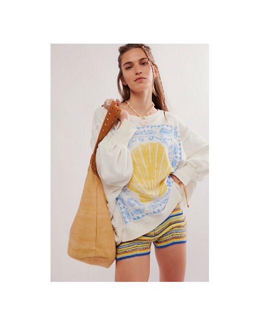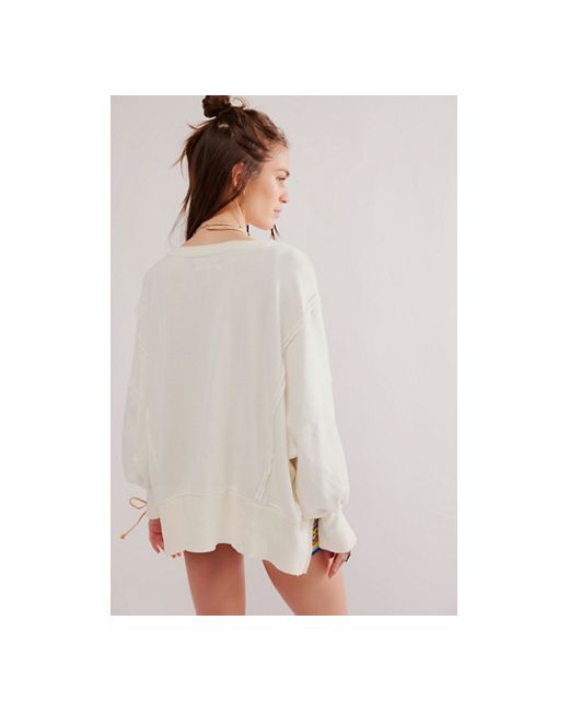 Just as cool as it is classic, this goes-with-anything long sleeve tee is featured in a slouchy, relaxed fit with worn, varsity-inspired number graphic at front for a true lived-in look. **Fit:** Slouchy, relaxed fit **Features:** Scoop neckline, dropped shoulders, side slits at bottom, ribbed hems, defined seaming **Why We We The Free Graphic Camden Pullover at Free People in Sea Salt Combo, Size: XS