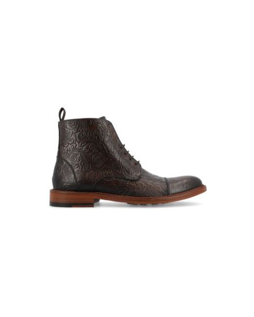 Meet the Rome boot in marron viejo from Taft. Stand out in our most versatile style with added flare. Now your favorite Romes feature a brown hand-burnished floral embossing for a dramatic look--they're a literal work of art. We spared no detail on this boot; the comfortable cushioned insole and quality will show when you put it on.