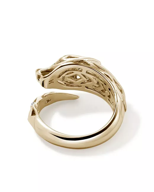 14kt yellow gold polished finish wrap design dragon motif white diamond pavé setting cut-out detailing slip-on style Normal everyday use and external agents may reduce the lustre of gemstones and gold surfaces. To maintain, use specific, non-abrasive products specially meant for cleaning jewellery.