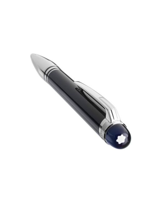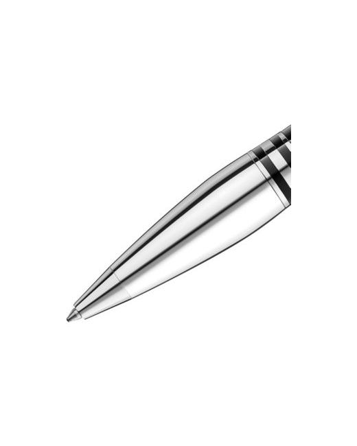 A floating Montblanc emblem caps this sleek writing instrument, a ballpoint pen that accents rich precious resin with elegant platinum. It's part of the StarWalker collection inspired by the mystery of space.