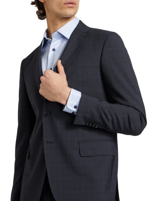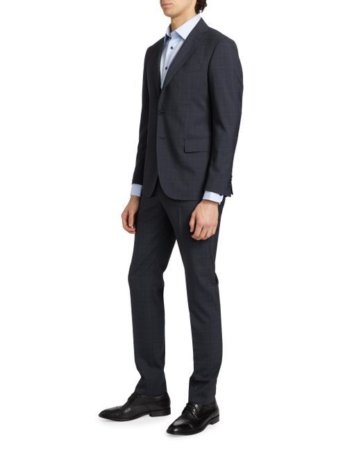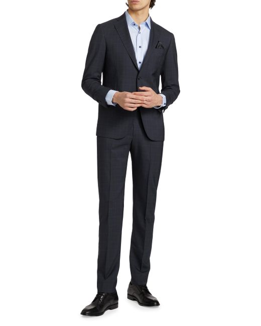 ONLY AT SAKS. A checked plaid pattern handsomely details this Saks Fifth Avenue single-breasted suit. Crafted of fine wool, this ensemble conveys a refined look. 100% wool. Dry clean. Made in Italy. JACKET Notch lapels Long sleeves Chest welt pocket Side flap pockets Two-button closure PANTS Crease front Belt loops Side slip pockets Fly front SIZE & FIT Model measurements: 6'3" tall, 36" chest, 32" waist Model is wearing a US size 40R For basic alterations and hemming, book an appointment online at your local Saks Fifth Avenue location. ABOUT THE BRAND This only-at-Saks line offers a complete wardrobe in high-quality fabrics and a classic fit. Standouts include tailored suiting, casual officewear, laid-back weekend looks and elegant evening pieces. Mens Pvt Brands - Sfamc Clothing > Saks Fifth Avenue > Saks Fifth Avenue > Barneys. Saks Fifth Avenue. Color: Navy. Size: 38.