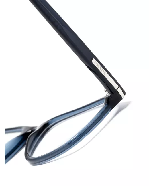 blue acetate rectangle frame clear lenses translucent design logo-engraved arm straight arms curved tips All glasses from FARFETCH are sold as non-prescription frames. These glasses come with a protective case.