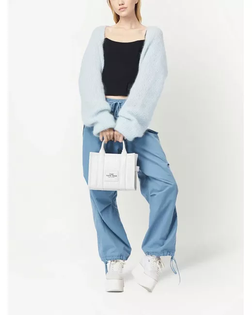 white embossed crocodile effect leather square body adjustable detachable shoulder strap two top carry handles top zip fastening logo patch to the front side strap main compartment internal logo patch lining
