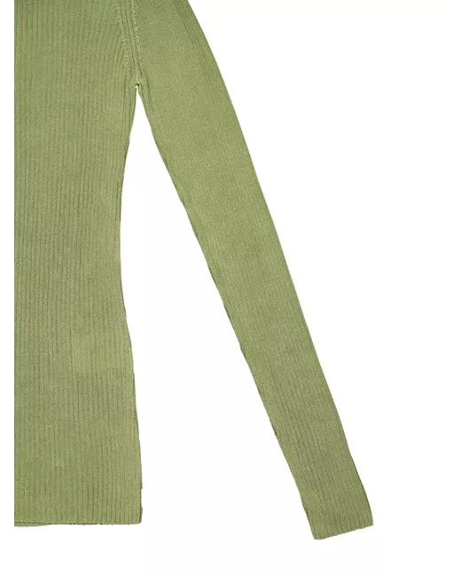 green/blue/white fine ribbed colour-block design classic collar V-neck long sleeves straight hem