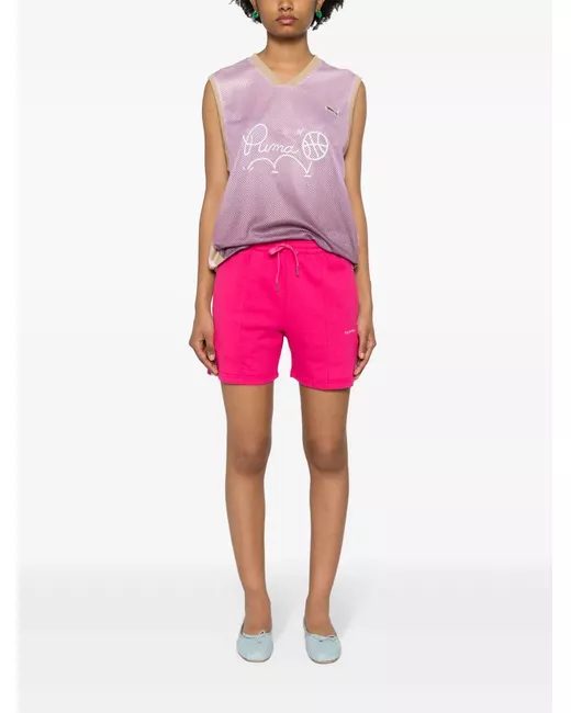 pink/white cotton blend jersey texture elasticated drawstring waistband side stripe detailing seam detailing two side inset pockets embroidered logo to the front