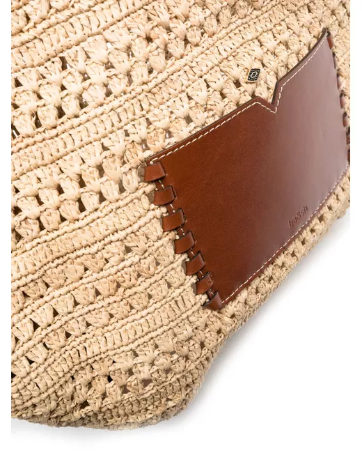 beige raffia/calf leather debossed logo to the front two flat top handles main compartment