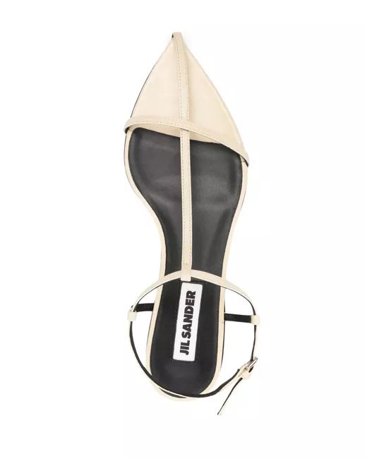cream white leather multi-way strap design pointed open toe branded footbed flat leather sole buckle-fastening ankle strap