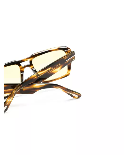 brown acetate tortoiseshell effect pilot frame yellow tinted lenses straight arms with curved tips These glasses come with a protective case.