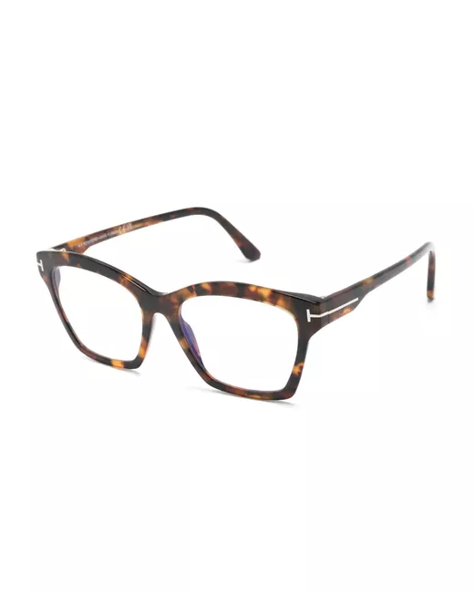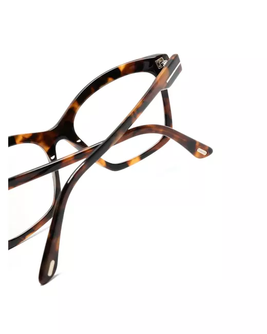 Havana brown acetate tortoiseshell effect butterfly frame clear lenses signature metal T logo to the side straight arms with curved tips engraved logo to the tip These glasses come with a protective case. All glasses from FARFETCH are sold as non-prescription frames.