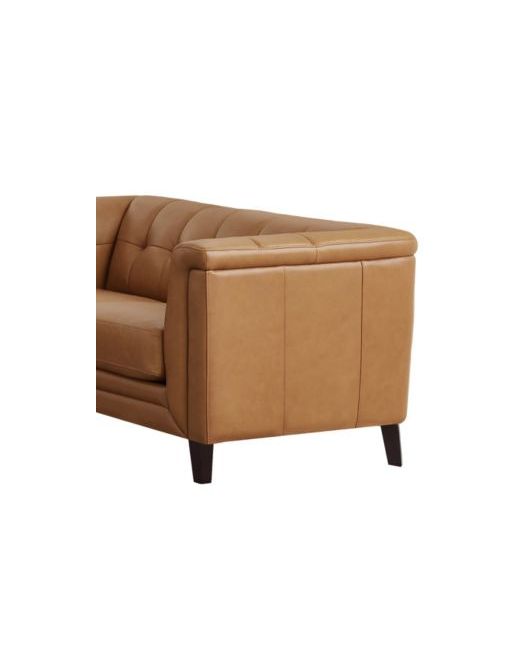 Energize your living room with the vibrant Arvo Leather Collection, a dynamic ensemble full of flair. Designers have masterfully reimagined a classic mid-century modern design, incorporating a gently curved silhouette, splayed wood legs, and blind biscuit tufting. The tufted shelter arms not only soften the overall look but also add a touch of warmth and sophistication, enhancing the lively and stylish appeal of this striking collection.