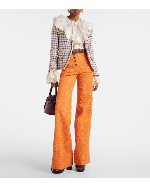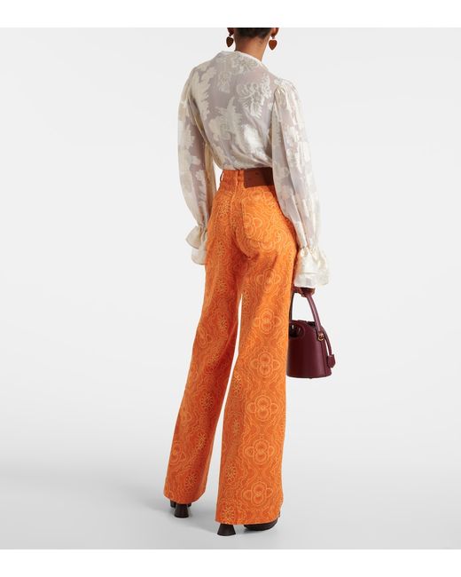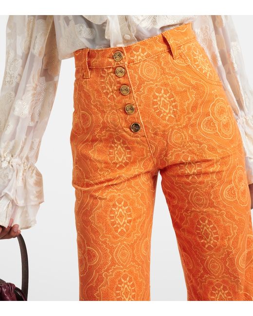 Material: 97% cotton, 3% elastane. Care instructions: machine wash at 30 degrees. Made in Italy. Designer color name: Orange. Closure: buttoned placket. Pockets: five pockets.