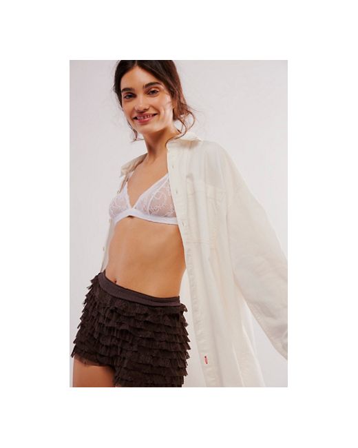 Inspired by vintage styles, these playful shorties from Intimately are featured in a lacey, ruffled design and super mini length for the cheekiest look. **Fit:** Mid-rise, micro length **Features:** Pull-on style, elastic waistband, picot trim, layered ruffled lace **Why We Feeling For Lace Shorties by Intimately at Free People in Hot Fudge, Size: Medium