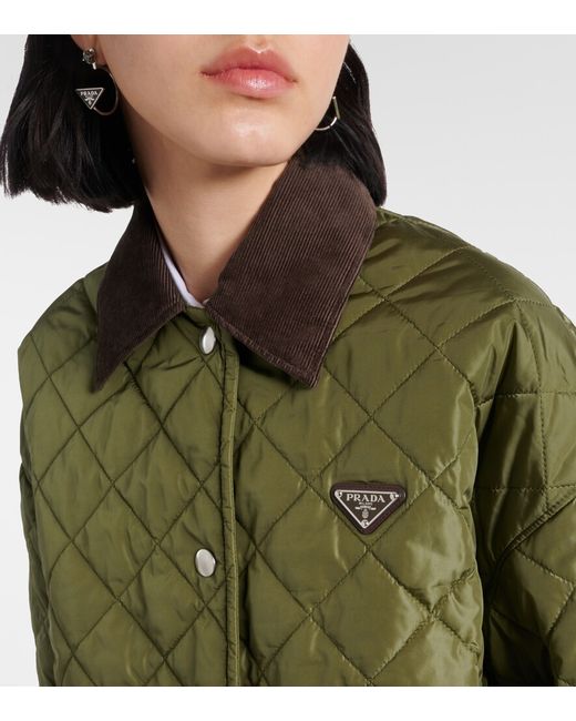 Material: 100% polyamide. Care instructions: machine wash at 30 degrees. Made in Italy. Designer color name: Militaire. Closure: snap-buttoned front. Pockets: patch pockets. Filling: 100% polyester. Contains non-textile parts of animal origin. Trim: 100% cotton.