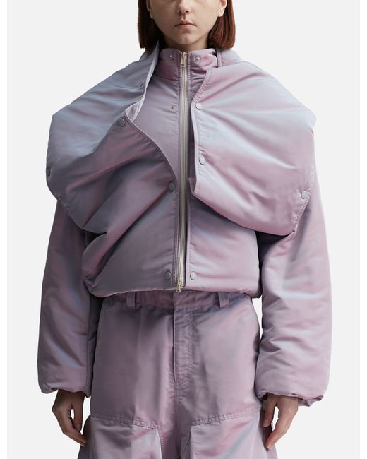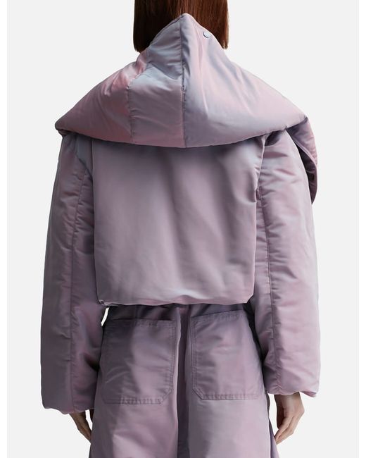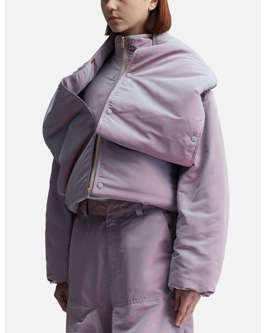 Y/PROJECTSnap Off Puffer JacketCropped cutDetachable press-stud panel to style different volumesPolyester paddingBranding on chestTwo front snap pocketsSingle interior snap pocketPolyester liningDrawcord hemColor: Lilac