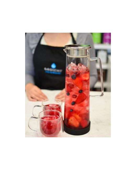 Quench in style with the Ultimate-Infusion Bundle Bali infuser pitcher 1500ml with stainless steel lid silicone base, paired with Fresno double-walled glass cups. Bisphenol A-free, flavor-neutral hydration with elegance. Cheers to a healthier sip