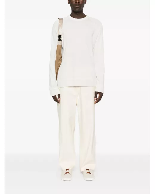 off-white cotton mélange effect round neck long raglan sleeves French terry lining straight hem