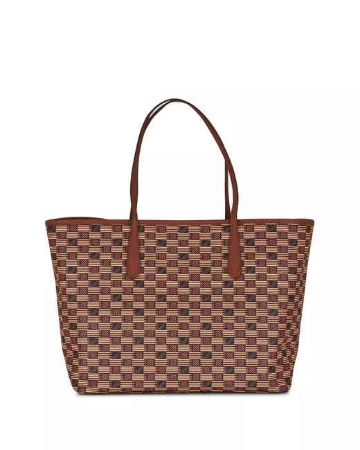 brown canvas monogram pattern two long top handles rear zip-fastening pocket open top main compartment