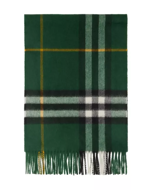 fern green cashmere check pattern rectangle shape fringed edge mini logo tag