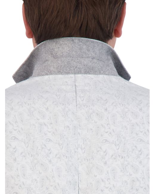 A jacquard blazer in a textured gray paisley pattern brings an added layer of sophistication to this timeless style. Notice the tonal Robert Graham jacquard lining along the inside. Pair with your favorite tailored shirt. Notch lapel with button front Long sleeve with lightly padded shoulder Besom pockets at front Tonal Robert Graham jacquard interior lining Interior pockets Rear side vents 100% polyester Lining: 54% polyester, 46% viscose Dry clean only Imported