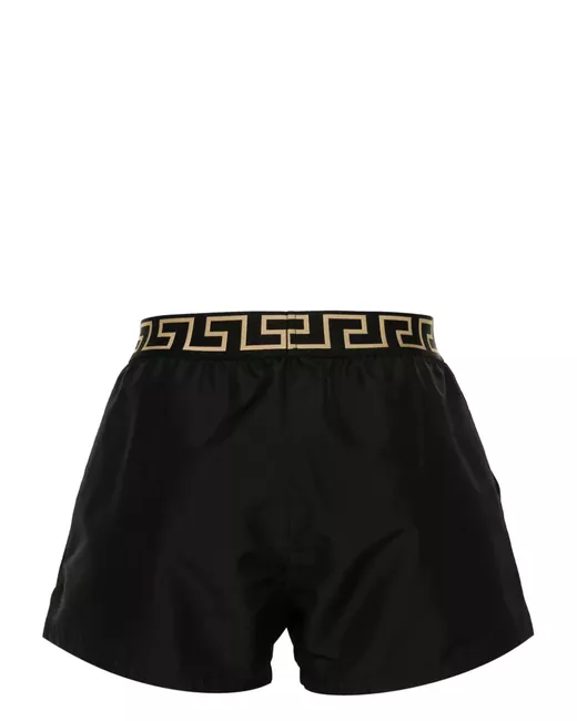 black/gold-tone lightweight elasticated logo waistband with signature Greca detailing and Medusa Head motif two side inset pockets full lining slip-on style Be mindful to try on swimwear over your own garments.
