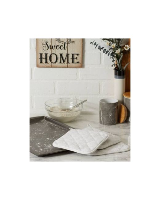 Terry Potholders Set includes three potholders, designed with a convenient corner hanging loop for quick and easy access. Heat safe up to 400°F keeping your hands and surfaces protected from the heat. Decorative, Functional and well constructed, this set is long-lasting and easy to care for.