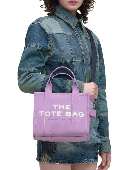 This tote bag showcases a meta slogan to produce a quirky vibe. Double top handles Top zip closure Cotton Imported SIZE Crossbody strap, 27" drop 10.25"W x 8.25"H x 5"D. Handbags - Marc Jacobs > Marc Jacobs > Saks Fifth Avenue > Barneys. Marc Jacobs. Color: Wisteria.