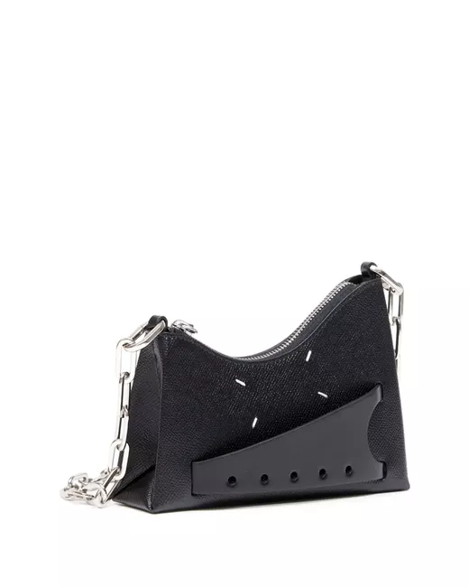 black calf leather grained texture signature four-stitch logo silver-tone hardware top zip fastening detachable adjustable leather and chain-link waist strap front handle main compartment internal slip pocket full lining